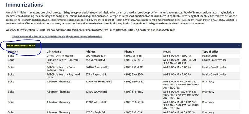 some of the many community resources. For more information, visit the hyperlinked page, and scroll down until you see the "Need Immunizations?" dropdown: